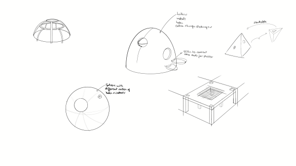 The concept was developed through sketches, design variations, and structural ideas that were gradually refined into a more practical and adaptable solution. The following subsections describe the design considerations and the structural concepts explored so far.